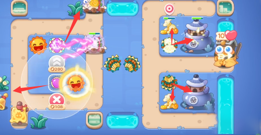 5。最终布局如图所示。如果出口处的线路压力很大,可以放置泡泡塔来减缓敌人的速度。