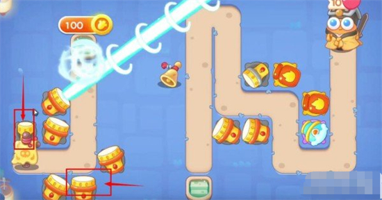 1。一开始,我们在右边这个地方放一个火焰瓶来清理周围的道具,然后在左边这个地方放一个手电筒来清理兔子。