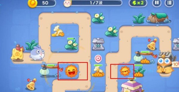 2。第一波结束的时候可以升级右边的太阳花加快清理道具,然后再放一个太阳花加快清理效率。