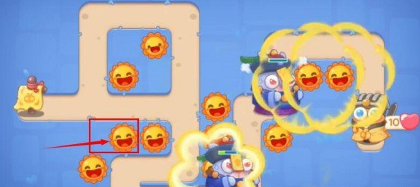 6。在中间位置补一个月亮减缓敌人缓解压力,然后继续补放电,注意及时升到满级,让满级手电筒威力大。