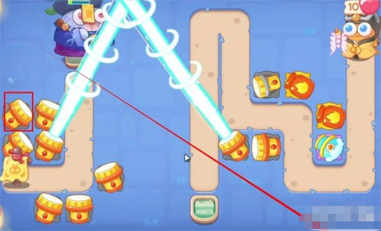 5。最后,如图所示放置赵奥。第一时间清理道具,利用水桶加速,最终可以取得胜利。