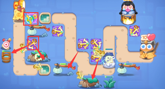 1。这个级别可以用手电筒,船锚,泡泡塔,瓶塔。