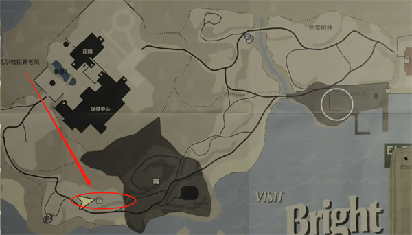 1。首先玩家需要来到图中所示的位置,这个隐藏的物体可以在疗养院的最南边找到。
