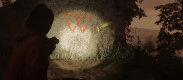 2。然后进入森林,注意周围的石头。找一块有箭头的石头,顺着箭头的方向走。