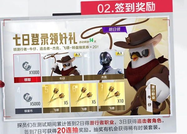2。在进入游戏的测试服期间,每天登录游戏还可以获得一个职业和一次20连平的机会。