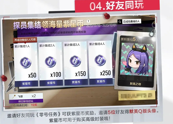 4。邀请好友测试还可以获得紫星奖,成功邀请5个好友还可以获得Q头像。