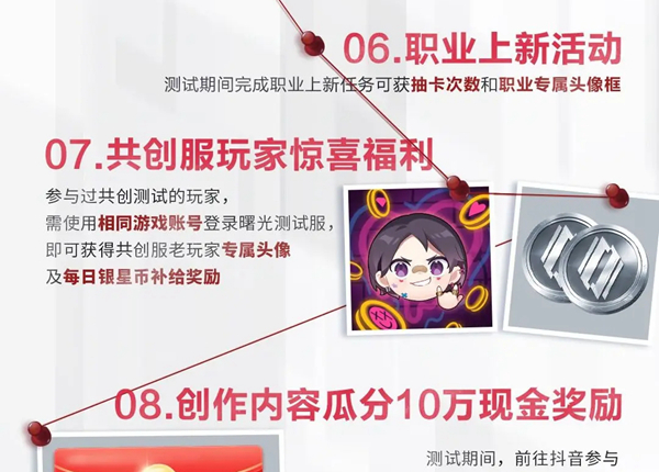 1。玩家可以在测试期间登录游戏,获得测试特别纪念奖励,包括专属时装和皮肤。