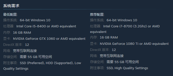 存储空间:需要55 GB的可用空间