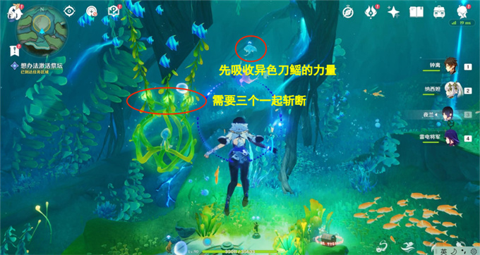 2、找到下图所示位置异色刀射线的吸收能力,剪掉水草。