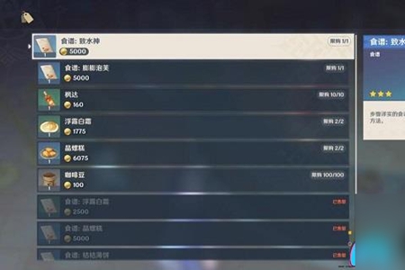 3。玩家可以直接从这里为莫拉兹购买水神的食谱。