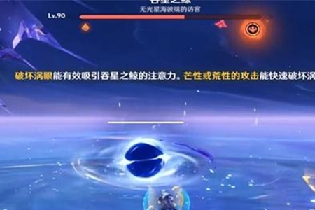2。那么在和吞星鲸战斗的时候,就会出现漩涡眼。玩家打破涡眼后,会被送到鲸鱼的肚子里。