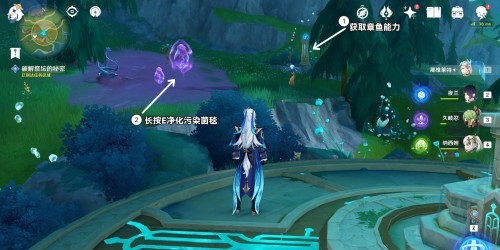 1。第一步,玩家需要先来到岗位,在这里可以获得章鱼的力量,净化污秽。