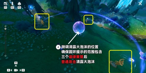 3。然后玩家需要将其中一个暴露的泡泡移动到如图所示的位置,然后依次击破泡泡。