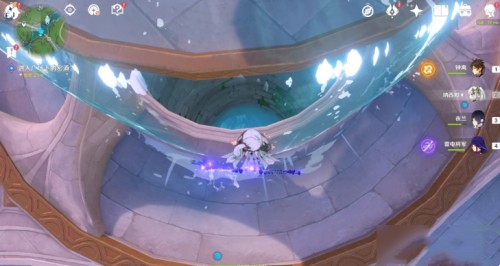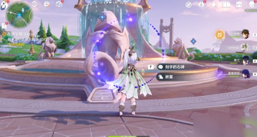 1。第一步,玩家需要走到如图所示的喷泉那里,在这里放三把钥匙。