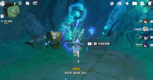 3。玩家下去后继续走,还可以看到路边有一个华丽的宝箱,玩家可以打开宝箱获得奖励。