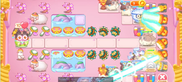 4。然后我们在两边造磁铁快速赚钱,在后方造多个箭头开始清理后面的障碍。