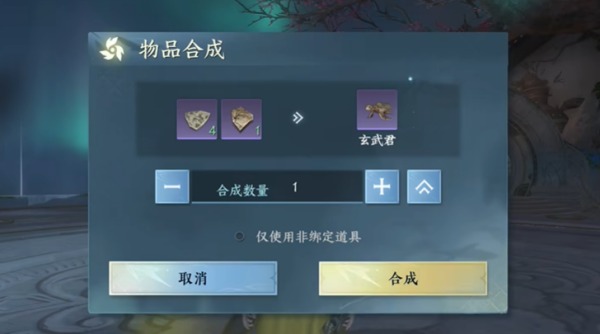 8。打开背包把所有的龟甲骨和四个龟足化石放在一起合成,就可以得到玄武君的坐骑了。