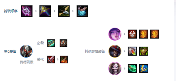 1。C大师需要凯撒给自己装备一把科技枪和泰坦,剩下的可以喝血换恢复装备。肉是给约里克的,剩下的是给暗影之拳或阿尔塞斯的。