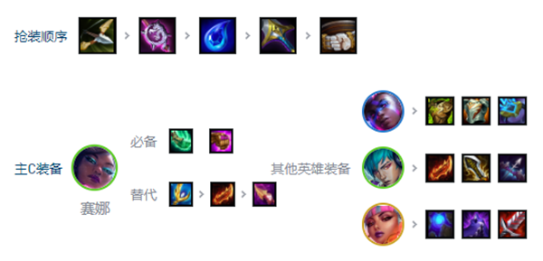 所需球员:塞纳、艾克、伊皮留斯、基亚纳、尼科尔、利利亚、凯南、暗影之拳(真伤)