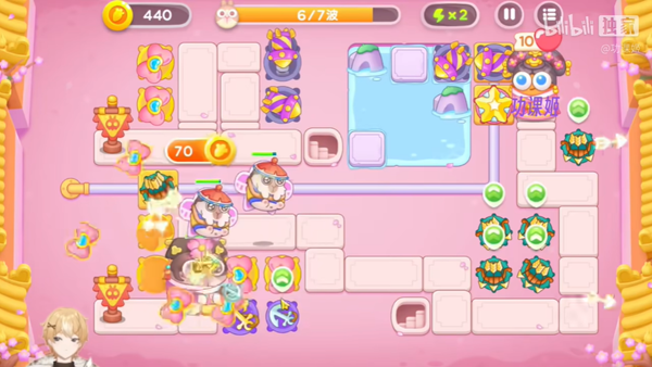 4。清除所有障碍后,在升级炮台中央放两个锚,在怪口放一个冰封炮,让敌人减速。