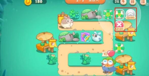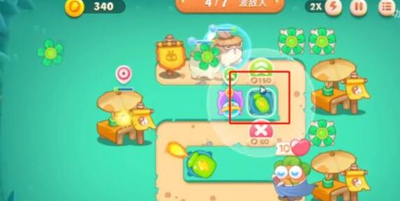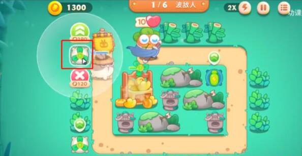 1。点击方块建造瓶炮,通过扫左边的竹子升级瓶子。