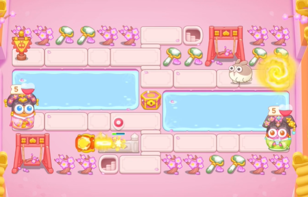 2。然后在地图中央放一只章鱼,在右边的池塘上造一个火箭和一个冰桶。