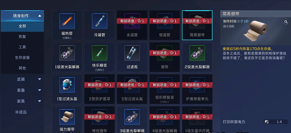 5。在探索地图的时候,玩家可以制作一些电池,放在背包里随身携带,以备不时之需。