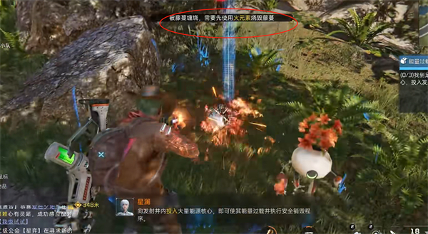 2。然后瞄准要攻击的对象,然后选择射击用火元素清理藤蔓。