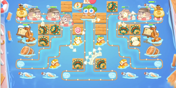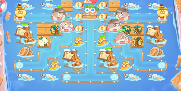 2。在清除某些障碍后,开始在地图中心建立甲板,并在其上建立多个箭头。