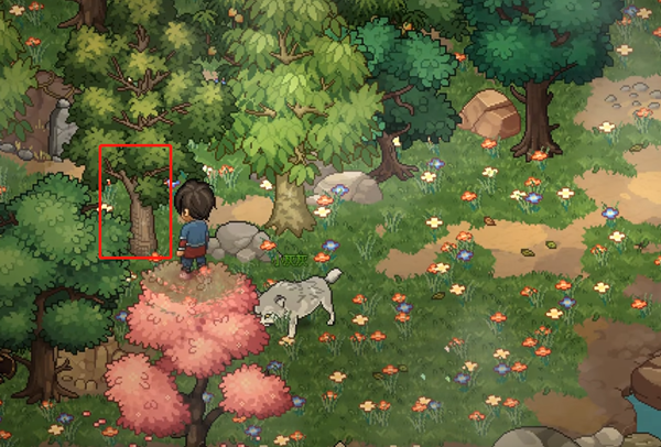 3。然后我们只需要来到如图所示的位置,我们就把树砍到后面。