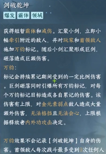 1。获得暂时的霸权,减少伤害。收集小剑,立即轻微吸引附近的敌人,并对玩家和领导者施加万军印记。