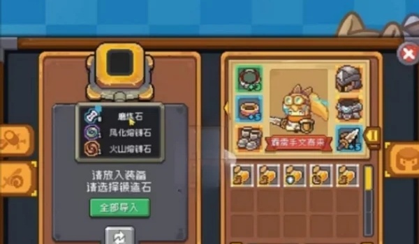 3。之后把装备拖到槽里,然后选择全部导入,就可以用磨石升级装备了。