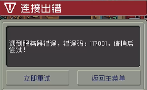 侠客的前向错误代码117001是很多玩家在游戏中都会遇到的问题。这是因为官方服务器出现了问题。玩家可以尝试通过重新进入游戏或点击重试来解