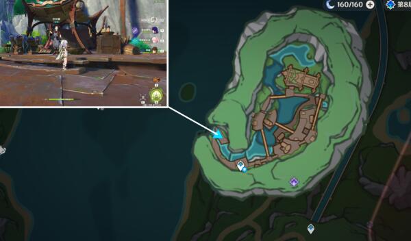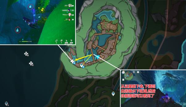 2、从传送点下到白松镇的水下岩壁,收集3个藏经螺。