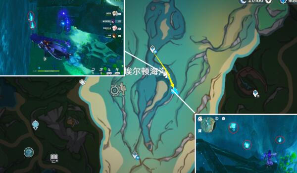 1.埃尔顿海沟右下角的岩壁上可以采集到5只天神蜗牛。