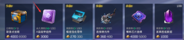 4。金条店每周可以买100个A级护甲组件,每周一也刷新,但是购买成本比较高。