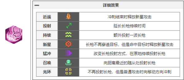 2。冲击枪:向移动方向冲刺,投射一支长枪对沿途敌人造成伤害。