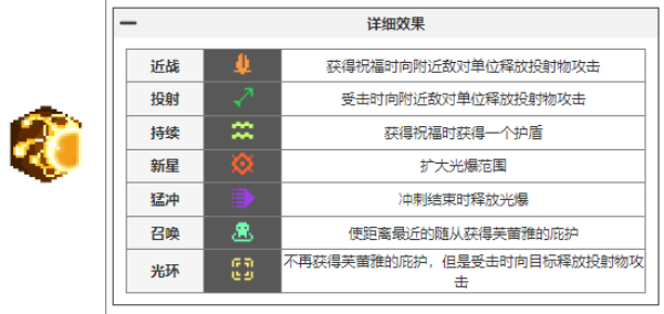 原骑士前传瓦尔基里祝福是玩家在瓦尔基里通过试炼后获得的一个增益。这个增益有很多且全面的属性,那么这些增益的作用是什么呢?下面小编给大家带来元气骑士前传瓦尔基里的祝福图鉴大全。