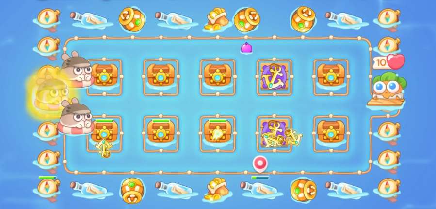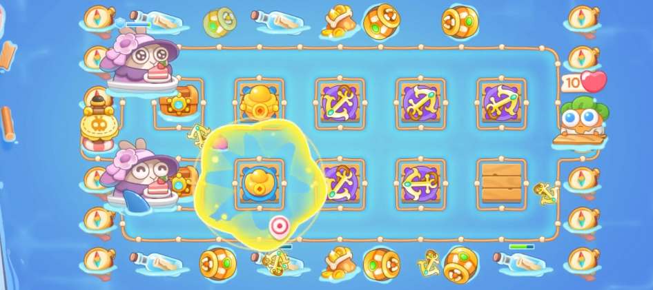 1、游戏开始时,首先在靠近右侧的上下两侧各放置一个锚点,并分别清除上下格子中的道具。