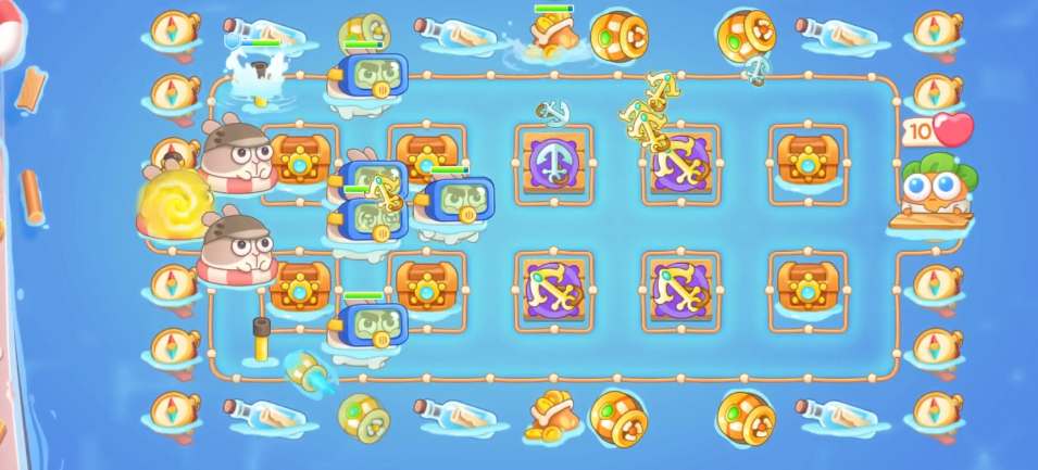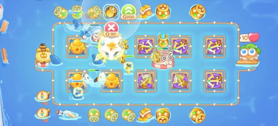3.清理完左边的道具后,继续放置锚和元宝炮塔。记得升级。