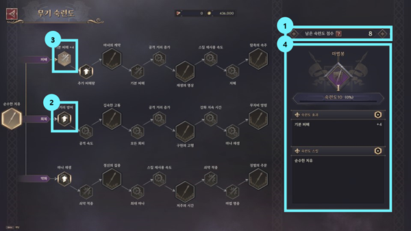 3。玩家可以通过积累熟练度经验值和提高熟练度获得熟练度点数,并利用这些点数获得激活效果。