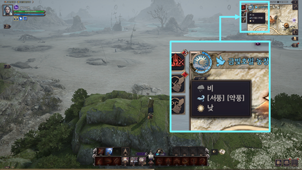 2。第二个常见的天气是雨天。雨天的降水会在地面产生水。水积到一定规模后,会影响玩家的行为。