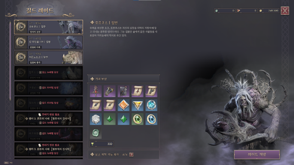 在公会基地操作公会raid入口,会出现公会raid画面。