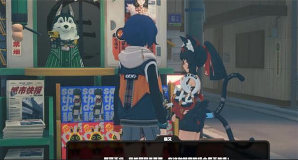 1。第一步,玩家需要先来到报摊,然后找到猫咪,进行对话。