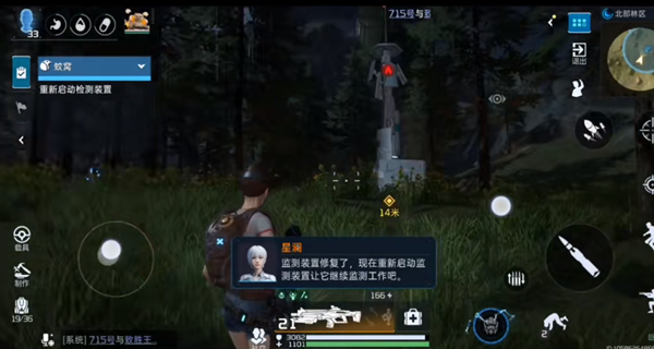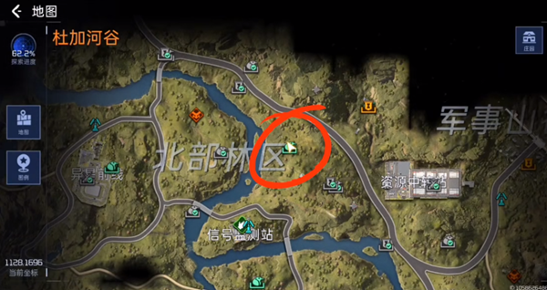 1。第一步,玩家需要打开地图,来到北方森林地区。在图中所示的位置可以看到一个信号塔,靠近就可以接任务了。
