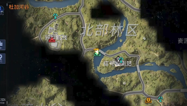1。首先玩家需要来到杜家河谷,打开地图,来到如图所示的北方林区。