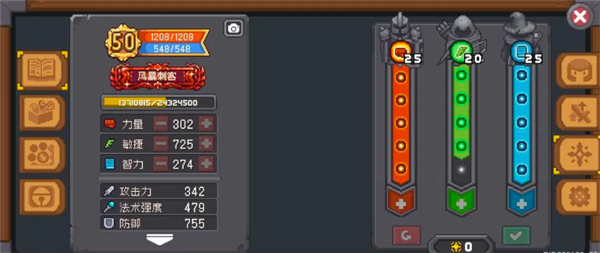 2。在属性上加一些点推荐玩家的主智力,副强度不需要增加太多,保证玩家不会被怪物杀死。