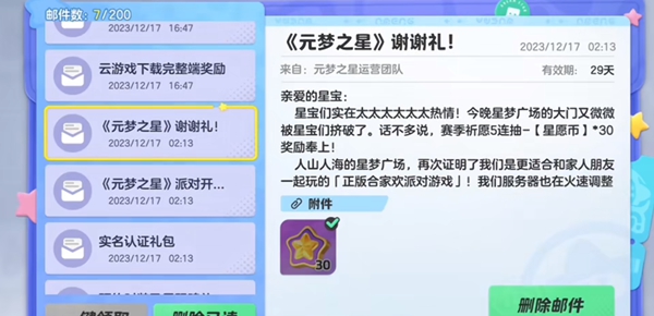 2。12月17日游戏内服务器异常补偿已经发放到玩家邮箱,别忘了领取。