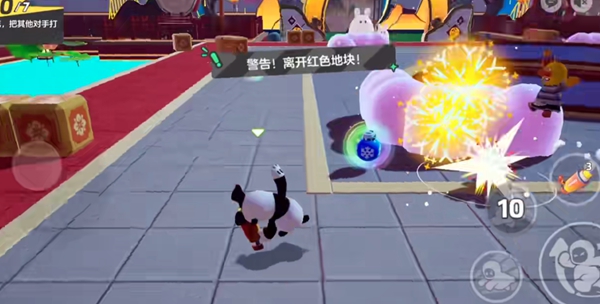 2。被烟火击中的玩家会被击退,掉下舞台就失败了。