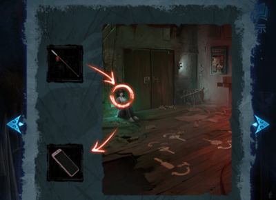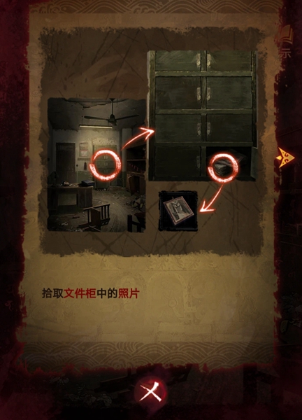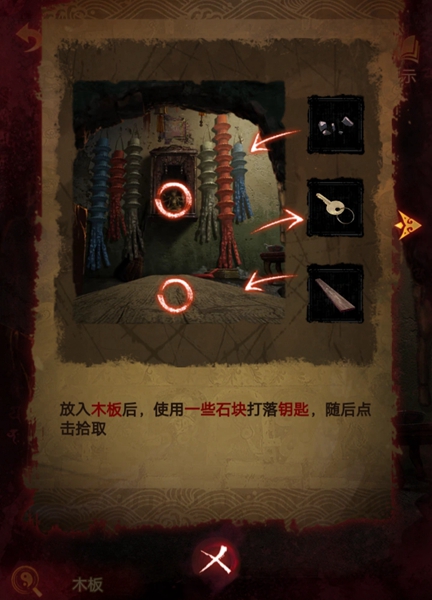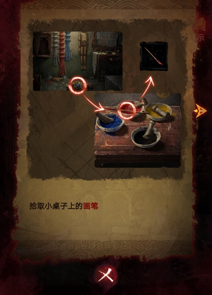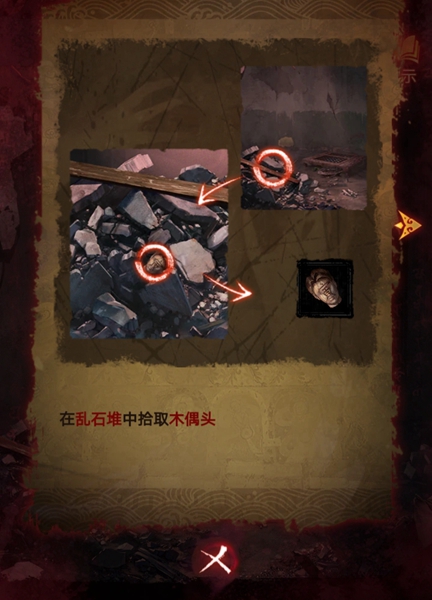 1。爬出洞后,在废墟中捡起木偶头和旁边火盆里的纸灰。